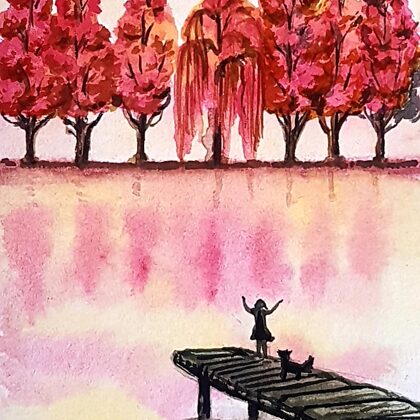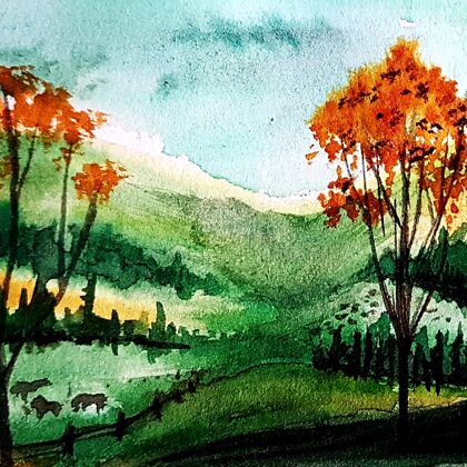 autorský soubor 27 karet 10x7 cm s tématem Nebe na zemi v textilním pytlíku - 100 kč